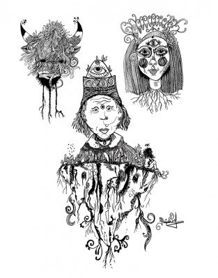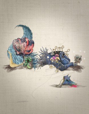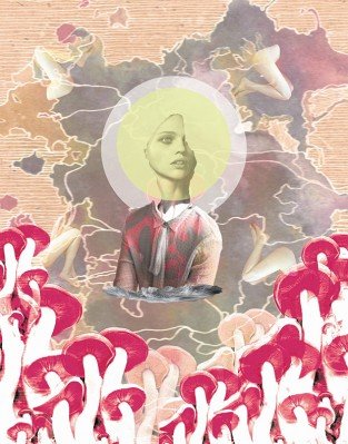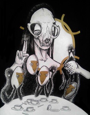 Los ojos amarillos se envuelven en agua, se esquivan alrededor de lunas que acarician con garras de hombres ahorcados que se incendian, se duelen, se clavan, se hacen piel nueva. Por las miradas de mis huesos mis amores se van vestidas de torso, de cara, de piernas fantásticas, calientes y plateadas se sientan agitando sus relojes sin huesos. El jardín de amapolas hasta la vista se vuelve carnívoro, con vestidos azules de noche clara, repicando…