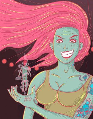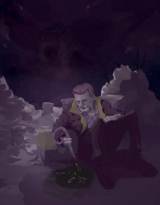 A punto de morir recordó aquella noche de luna llena: el brebaje entre sus manos, espeso y caliente, cuyo vapor se mezclaba con la brisa húmeda del riachuelo, debía ser ingerido exactamente a la media noche y antes de la doceava campanada. Los nervios, el dolor de la quemadura en labios, lengua, garganta y en la boca del estómago hicieron que se pasara por unos cuantos segundos. Saboreó, entre la mezcla, sangre y pelos del…
