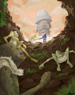 Sentado en la vitrina, el General mira el techo. Recuerda el día en que le informaron que la posibilidad de vida inteligente en Kepler-62f era una certeza y lo invitaron a ser parte de una misión espacial histórica. Recuerda el despegue, la bola de agua, tierra y nubes que dejaban atrás y los tres años de viaje rutinario junto a sus seis colegas. Recuerda el avistamiento de K62f, la adrenalina del acercamiento y el suspiro…