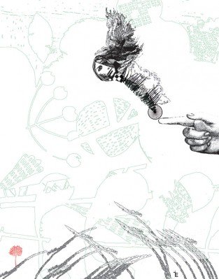 Ella lo sabe. Me ha visto sobre la barda de su casa desde hace ya unas semanas. Ella sabe que la escucho, ella sabe que la huelo. Por eso su ropa está al revés. Por eso se arma con cruces. Por eso araña el monte. Por eso todos los días busca, escarba. Para robarme los ojos, para impedir que yo siga siendo este escalofrío que traspasa su ventana. Ella sabe que en cualquier momento perforaré…